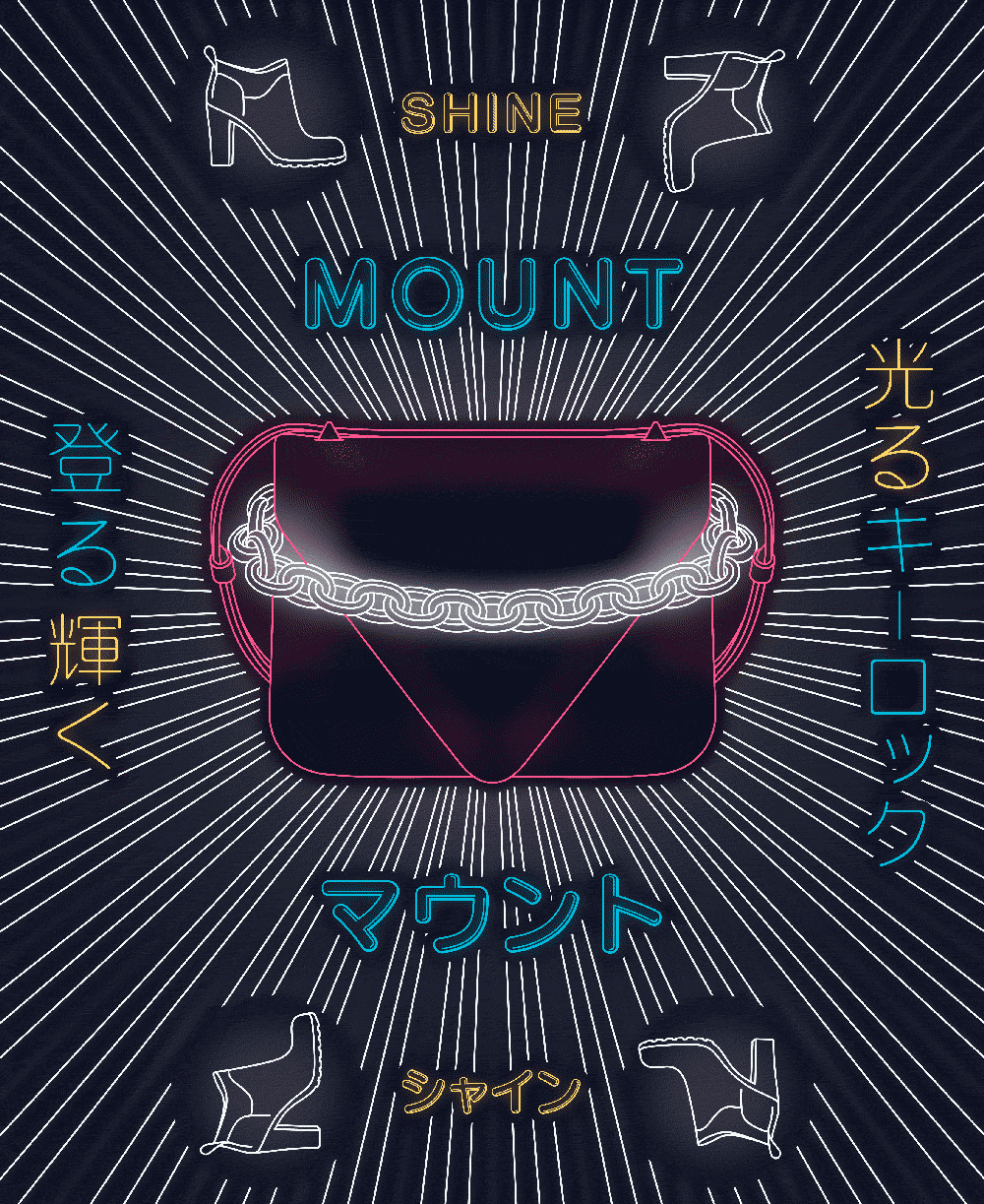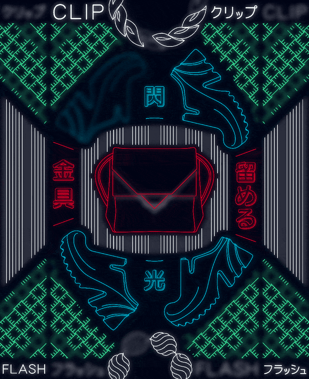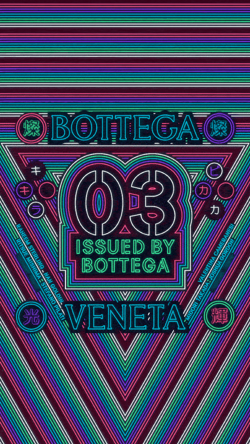I presented a collaborative visual in BOTTEGA VENETA's digital journal. Focusing on the products, colors and textures of the 2021FW Collection "Salon 02 Berlin", I created a neon animation of the new BOTTEGA identity. We created six original visuals and seven story titles, plus media assets for the ads. And moreover, it adorns the front and back covers. It is a series of 15 works in total. The artwork on the main cover is a tribute to photographer Nan Goldin.