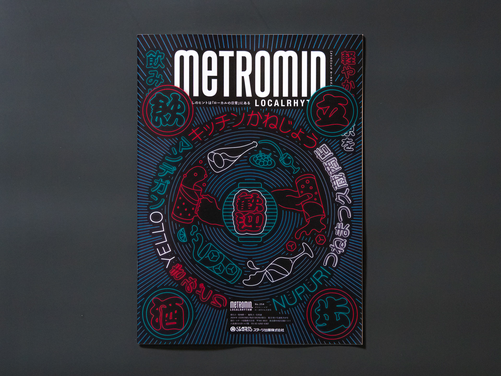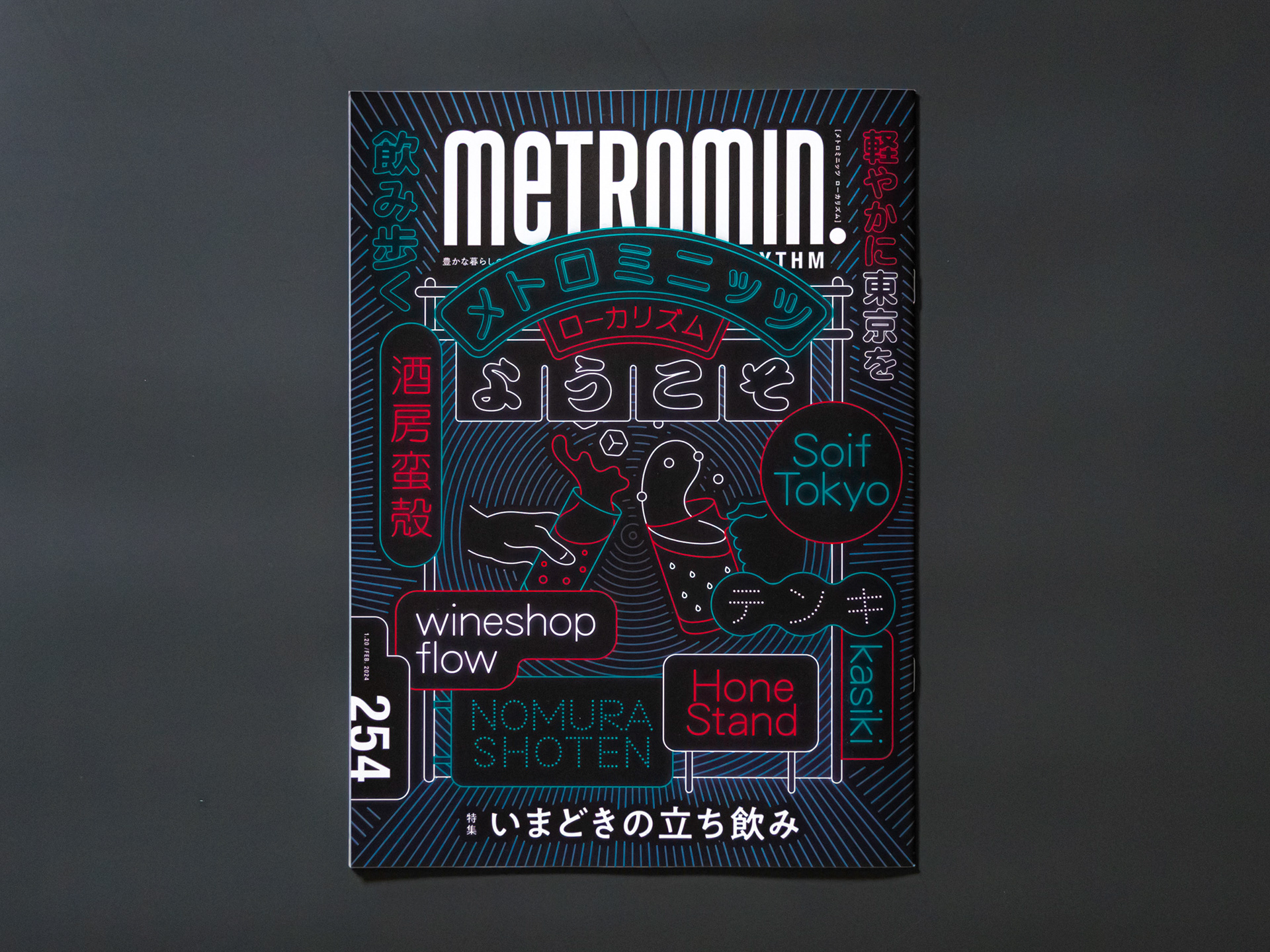 東京メトロで配布されるフリーマガジン「メトロミニッツ」の表紙グラフィックとモーションを担当しました。立ち飲み特集に合わせて誌面にネオンのきらめく飲み屋街をつくりました。背景はシルバーの特色を使い輝きを増してます。