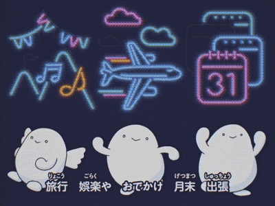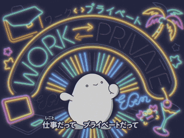曲にのせてアニメーションのキャラクターがネオンの中で踊る映像。